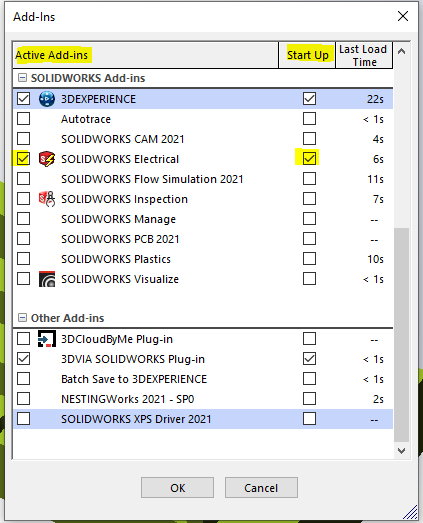Denna blogg tänkte jag ägna åt det eminenta add:en som finns i SOLIDWORKS som heter SOLIDWORKS CAM. Det jag dock tänker börja med innan jag pratar om SW CAM och hur man kan komma igång med den är att jag vill prata lite om add:in och hur man bör tänka här. Så vad är då ett add:in? Jo det är ju precis som det låter ett tilläggsprogram som löser något som inte finns som standard i SW. Exempel på detta är ju toolboxen, simulation eller just CAM-delen. Dessa sätter man ju igång eller kan ha igång hela tiden. Min rekommendation här är att man bara har de allra nödvändigaste igång hela tiden exempelvis toolbox eller CAM. Alla andra bör vara avstängda för autostart. Varför då detta? Jo alla tar lite prestanda/tid och kollar man specifikt på CAM delen så kommer den att kolla efter CAM-data på varje fil du öppnar, tar inte nån lång tid, men om man inte behöver använda den så är det ju helt onödig tid. Nedan ser du hur man stänger av den och andra add:in som uppstartsalternativ och aktiva add:in just nu.