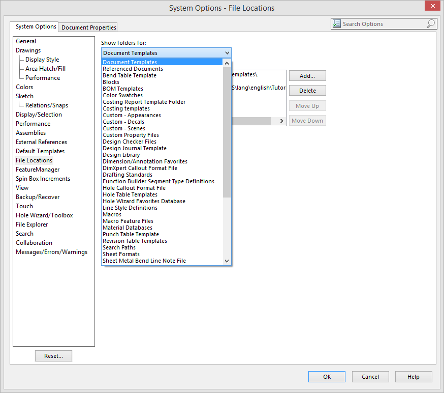 - “Options – System Options – File Locations” är vital för att få det bekvämt i vardagen. Använd denna för att peka ut var mallar, block, tabeller, materialdatabas mm ligger så man slipper klicka sig fram till dessa varenda gång. Om man nyligen har flyttat en massa filer och inte har ett PDM-system som håller koll på var filerna finns kan det vara idé att peta in sökvägar till var filerna befinner sig under “Referenced Documents”. Det sparar mycket klickande…