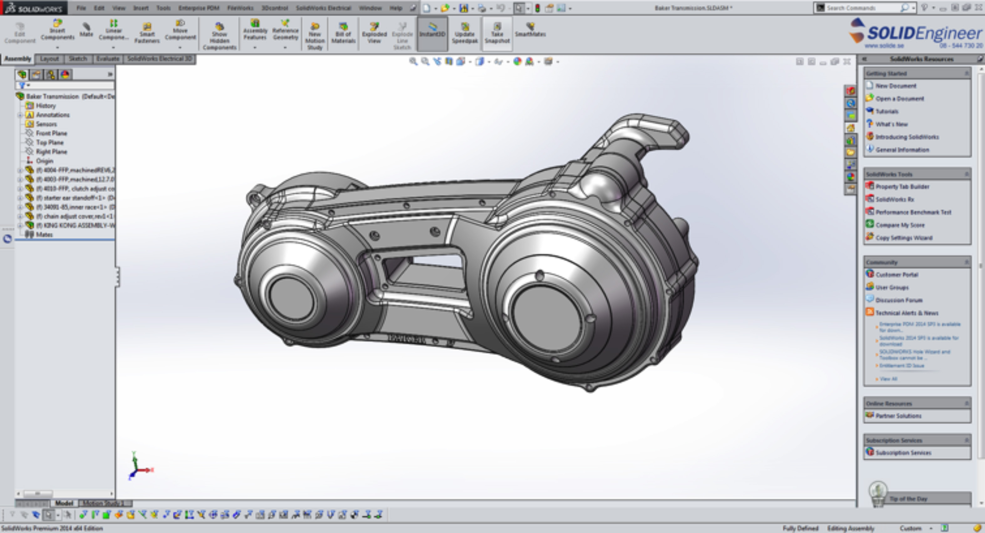 I SOLIDWORKS 2014 finns det förbättrade möjligheter att anpassa sina snittvyer för att kunna välja vilka komponenter som man vill snitta. Med denna funktionalitet kan man ”skala” maskinen för att visa funktionen inuti.