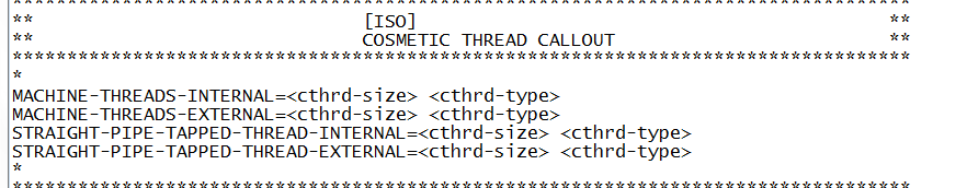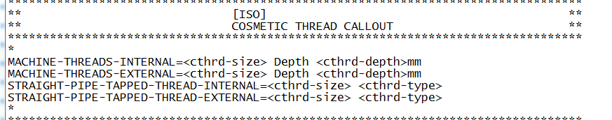 Öppna filen med notepad. För att lite snabbare hitta vad vi letar efter, använd sökfunktionen genom att klicka Ctrl + F, och sök på ”Cosmetic thread callout”. Eftersom det finns olika standarder så får du klicka ”next” tills du kommer till den som gäller den standarden du ändra, men på min bild ändrar jag för ISO standarden: