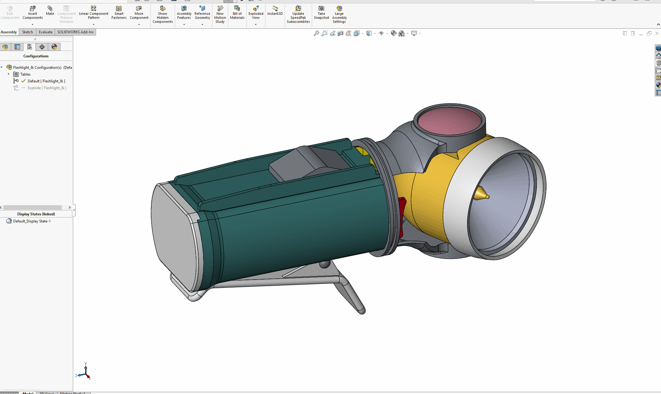 För att lättare kunna se och jobba med en delmängd av komponenterna i en sammanställning är kommandot Isolate väldigt behändigt. Vad det gör är att temporärt dölja alla komponenter förutom de man markerat. Då synlighet är en av de saker man kan styra med ett Display state så kan man spara det isolerade läget just som ett Display state för att snabbt kunna komma tillbaka till det.