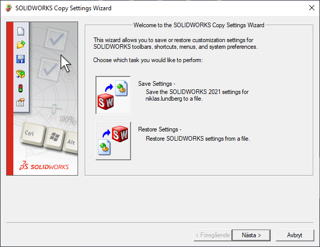 Dina favoritinställningar kan du sedan spara med hjälp av “Copy Settings Wizard”. Ett tips är att spara dina Settings utan “System Options” så att du kan använda i alla versioner av SOLIDWORKS.