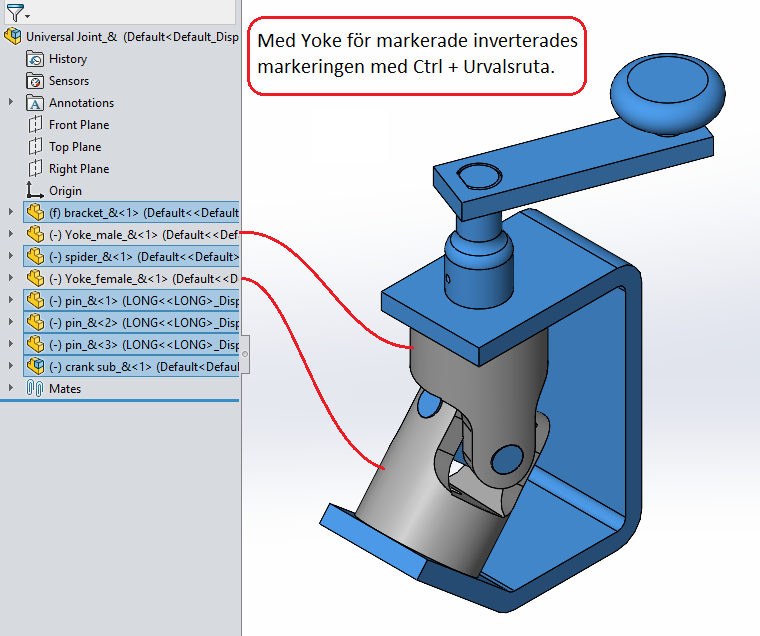 Invertera markering av komponenter genom att hålla ner Ctrl och markera med urvalsruta.