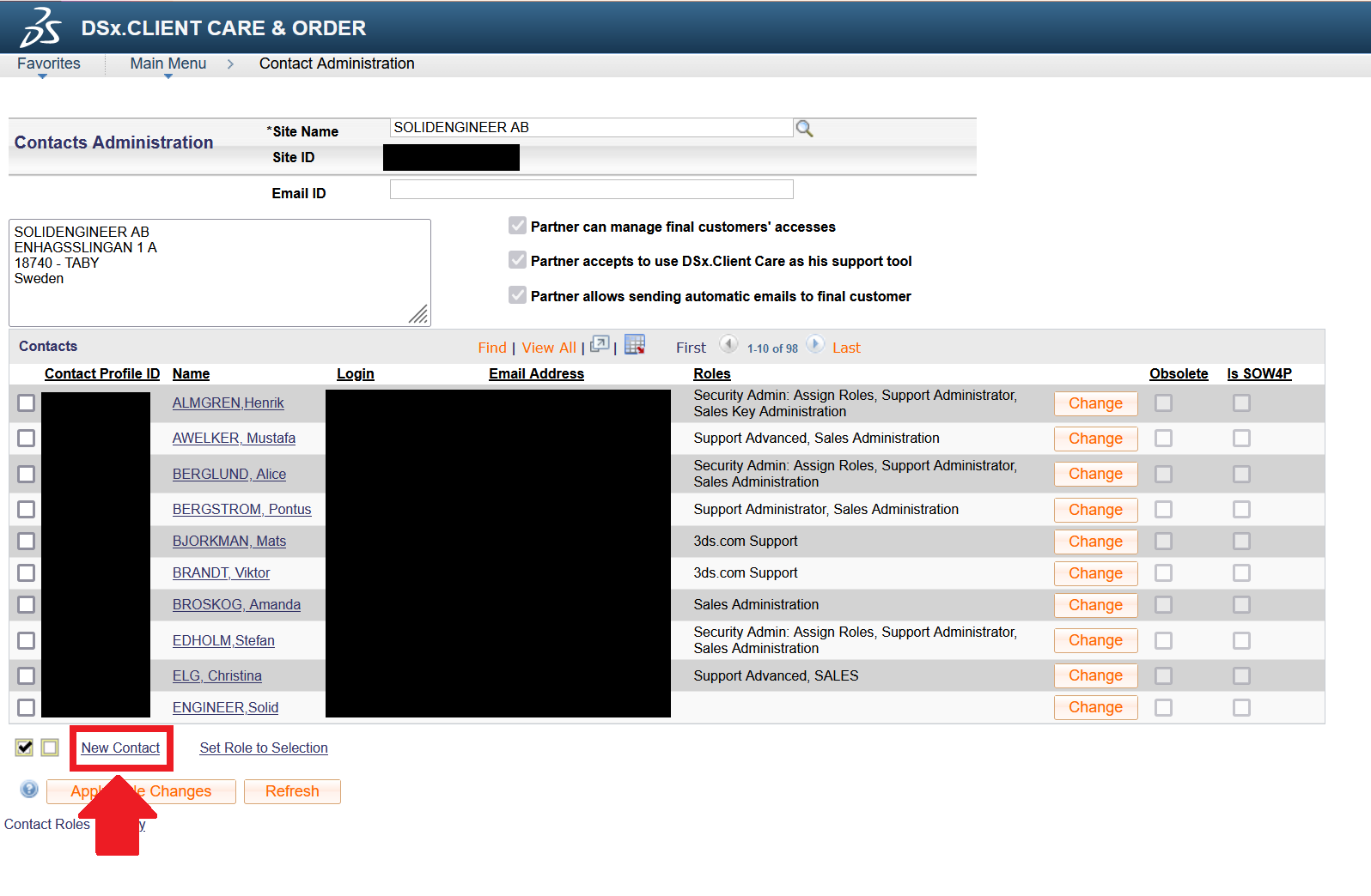 För dig som är CAD administratör på företaget är det viktigt att du ser till att alla relevanta anställda är inlagda i det nya kontosystemet DSx Client Care. För att lägga till en kontakt måste du först checka av så att du har allt i följande lista: