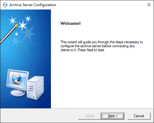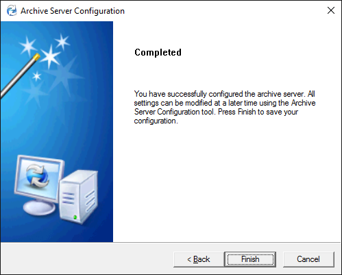 Efter att du klickat på Finish så startar Archive Server Configuration automatiskt: