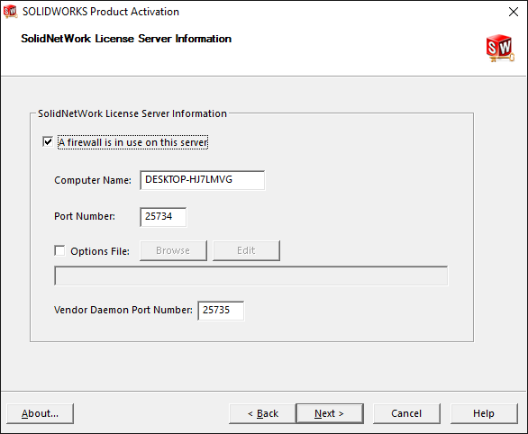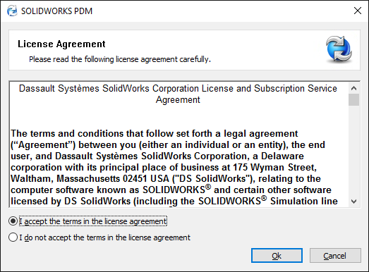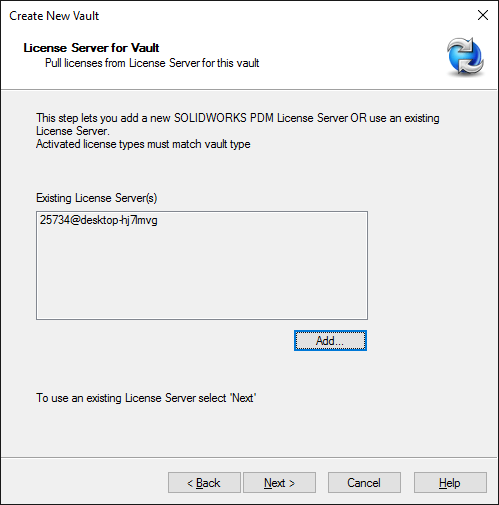 Här skriver du in ditt, eller dina, PDM Standard licensnummer och klickar på Next. Om man har Solidworks licenser som inte är flytande så får man ett licensnummer per Solidworks Pro/Premium som man har, alla dessa ska skrivas in. Har man flytande licenser så har man ett licensnummer som innehåller samma antal användare som man har Solidworks licenser. Har man en mix av flytande och fasta så kan behöva skriva in flera licensnummer.
