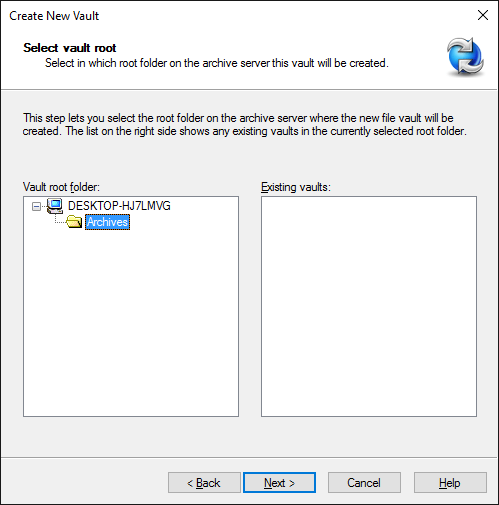Nästa steg är att skapa ett valv där filerna ska sparas. Högerklicka på dator och välj “Create new vault…”