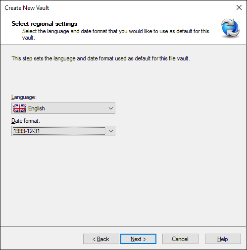 När du klickat på ”create new vault…” så startar en wizard som hjälper dig att skapa valvet.