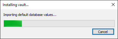 Efter att du klickat på Next så dyker ovanstående ruta upp som visar vad och hur långt installationen av valvet kommit.