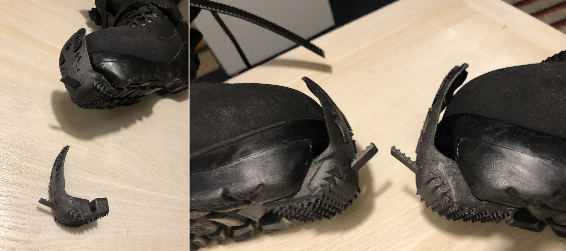 Det gick förvånansvärt enkelt att med ett skjutmått och några anteckningar konstruera en lösning på problemet i SOLIDWORKS. Den var också enkelt att printa den i en 3D-printer. Snart kanske det här skoskyddet kommer finnas på hyllan i en sportbutik nära dig?!