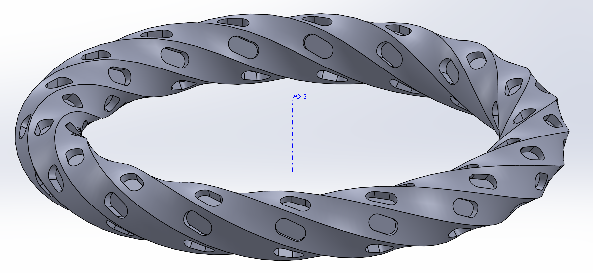 Om man läser nogrant på wiki sidan så förstår man vad som uttmärker denna form och varför den är cool. Det är inte svårt att få upp skisserna som beskriver de väsentliga men det är lite pilligt hur man ska få till ytorna korrekt efter de. Speciellt om man ska vara nogrann med curvaturen. I svaret längre ner finns två oloider bifogade. Den jag gjorde för metal-3Dprintern och en som är “fel”, på så sätt ytorna buktar inåt längs hela sidan. Men jag skulle ändå godkänna den om jag skulle få den som svar. Pga att det är svårt att veta vad som händer helt enkelt. Aja, hoppa på och försök nu!