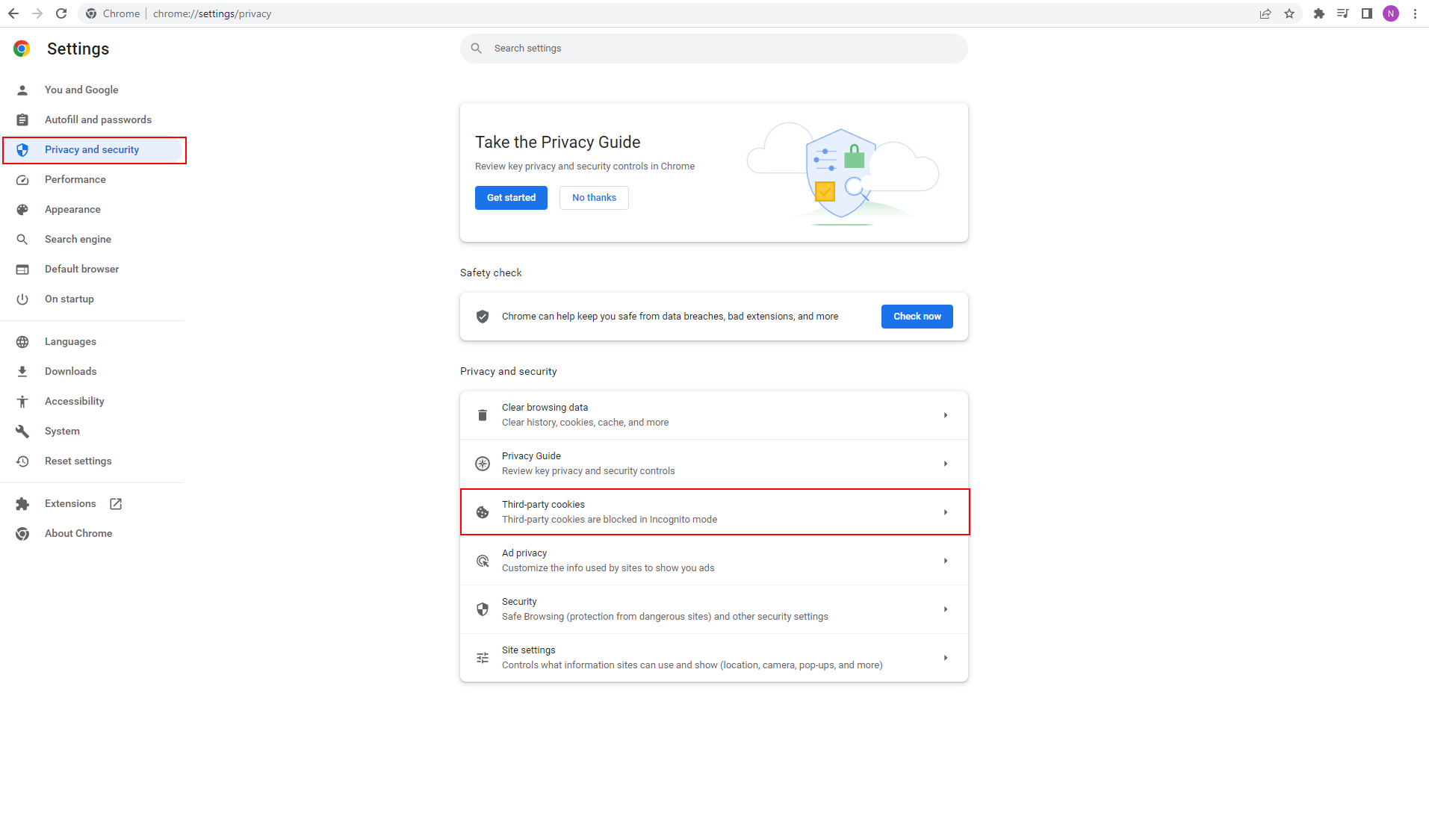 - Klicka på Third-party cookies.