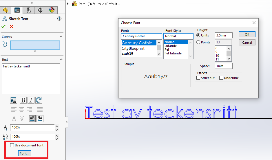 Det är bra att förstå hur SOLIDWORKS teckensnitt fungerar i praktiken.